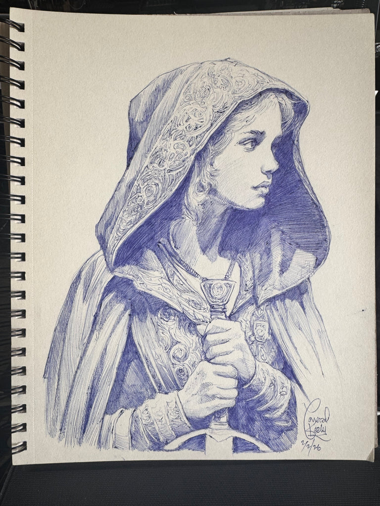 Original ballpoint drawing on mixed media paper 9x12”